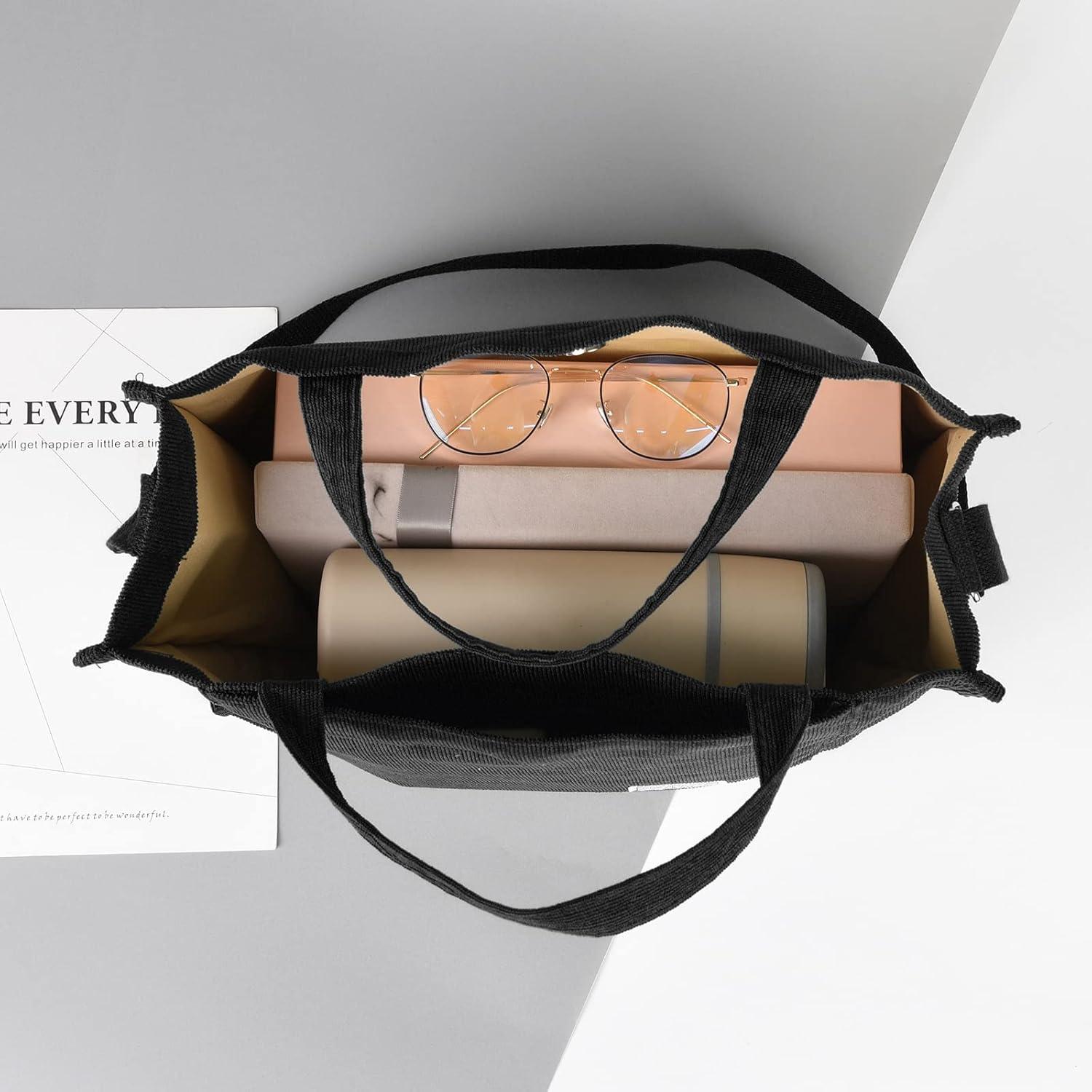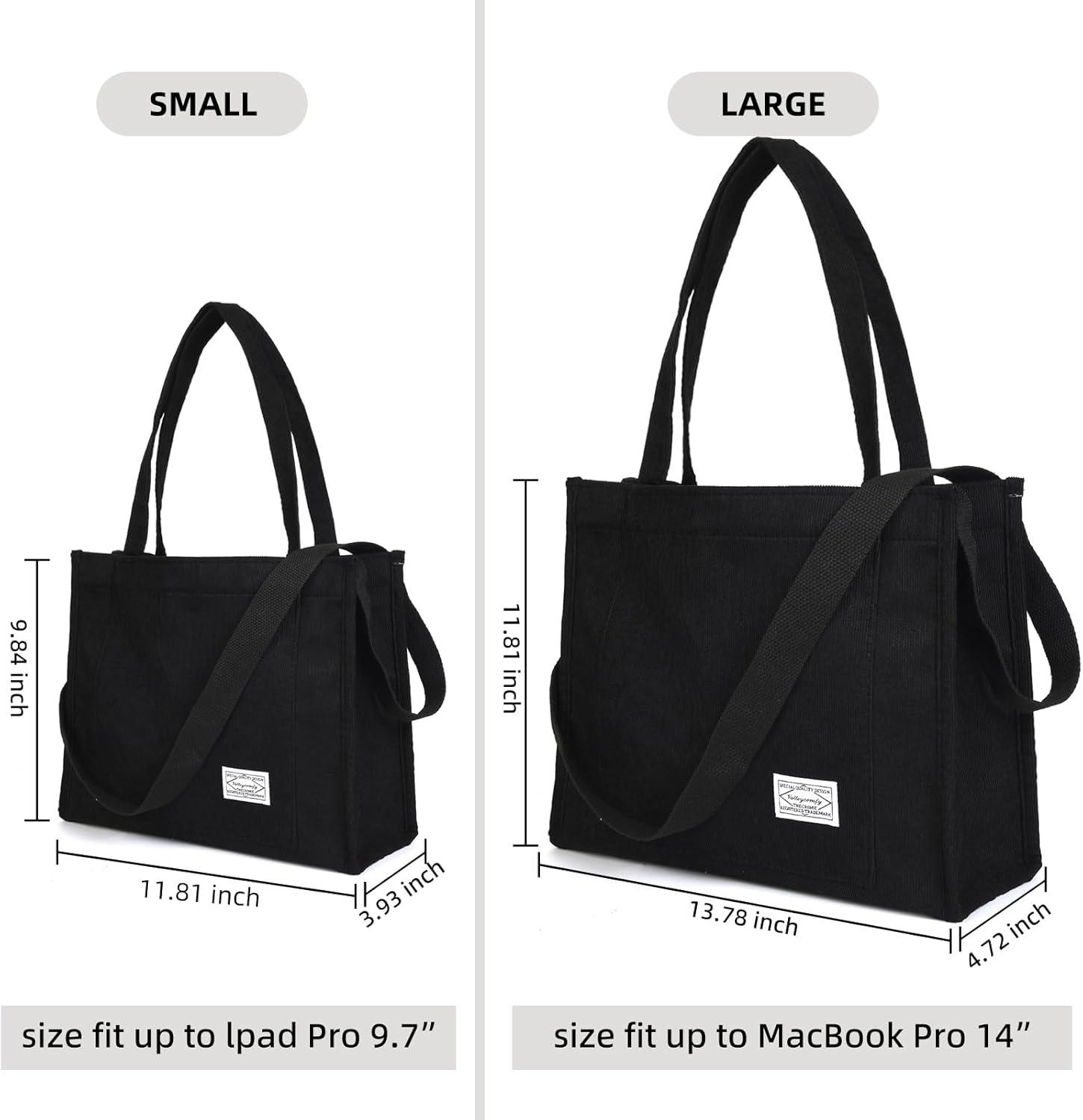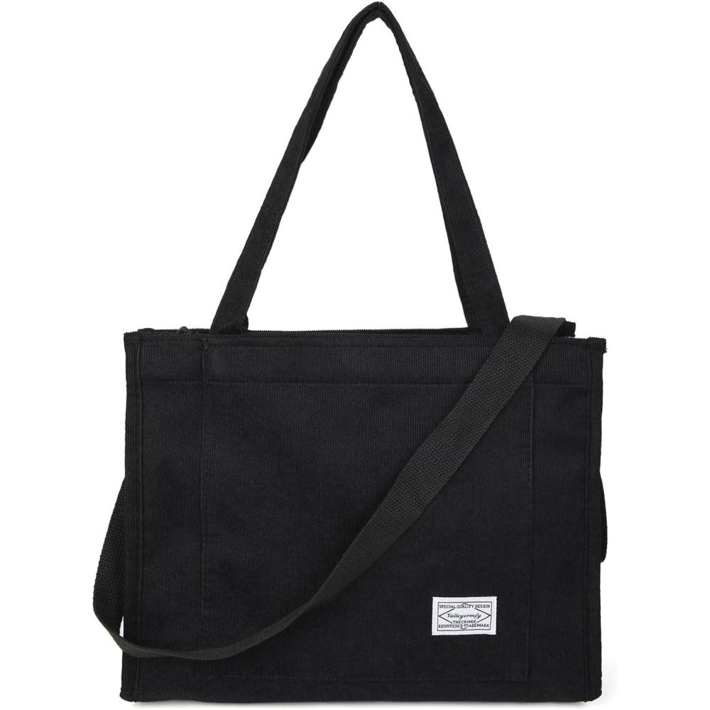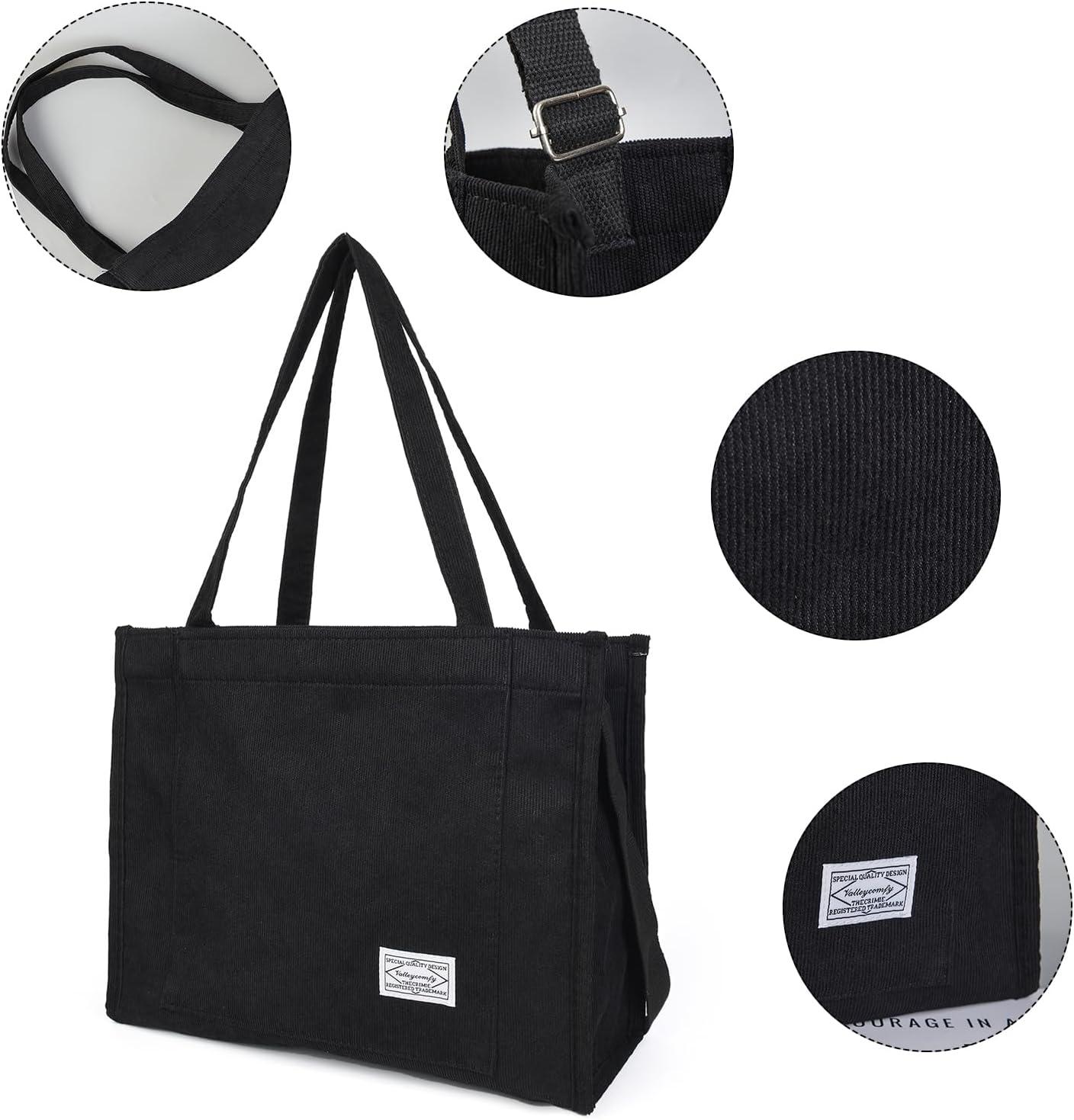Valleycomfy Corduroy Tote Bag for Women Travel Crossbody Bag Purse Women Shoulder Bags Work Handbags Everyday Hobo Bag(Black)