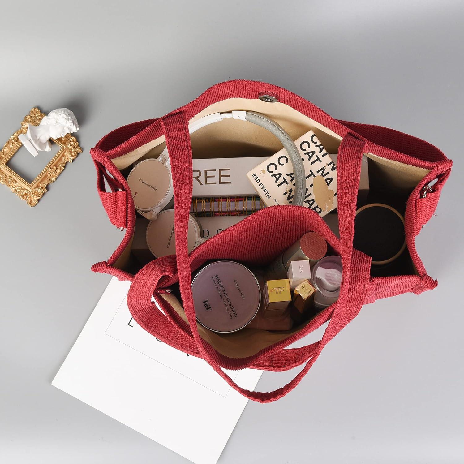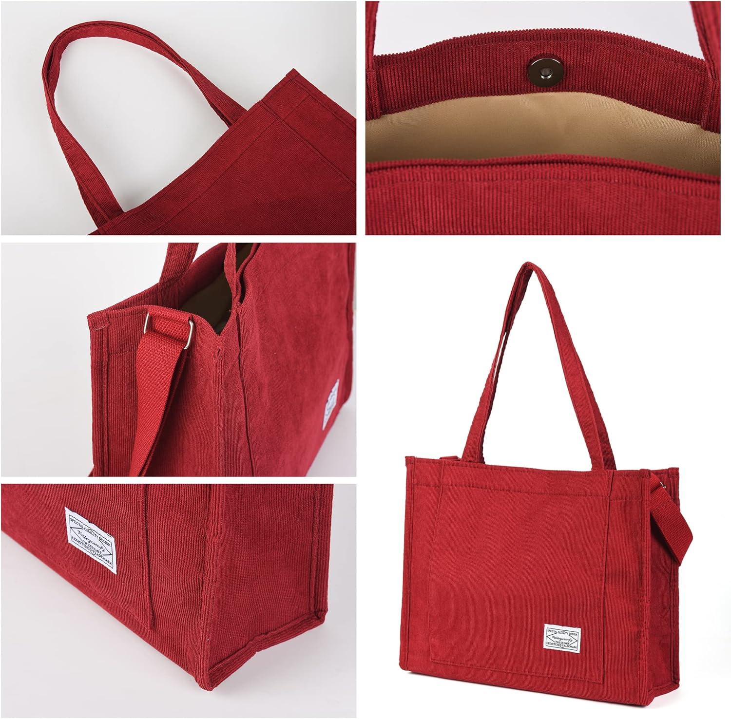 Valleycomfy Corduroy Tote Bag for Women Travel Crossbody Bag Purse Women Shoulder Bags Work Handbags Everyday Hobo Bag(Dark Red)