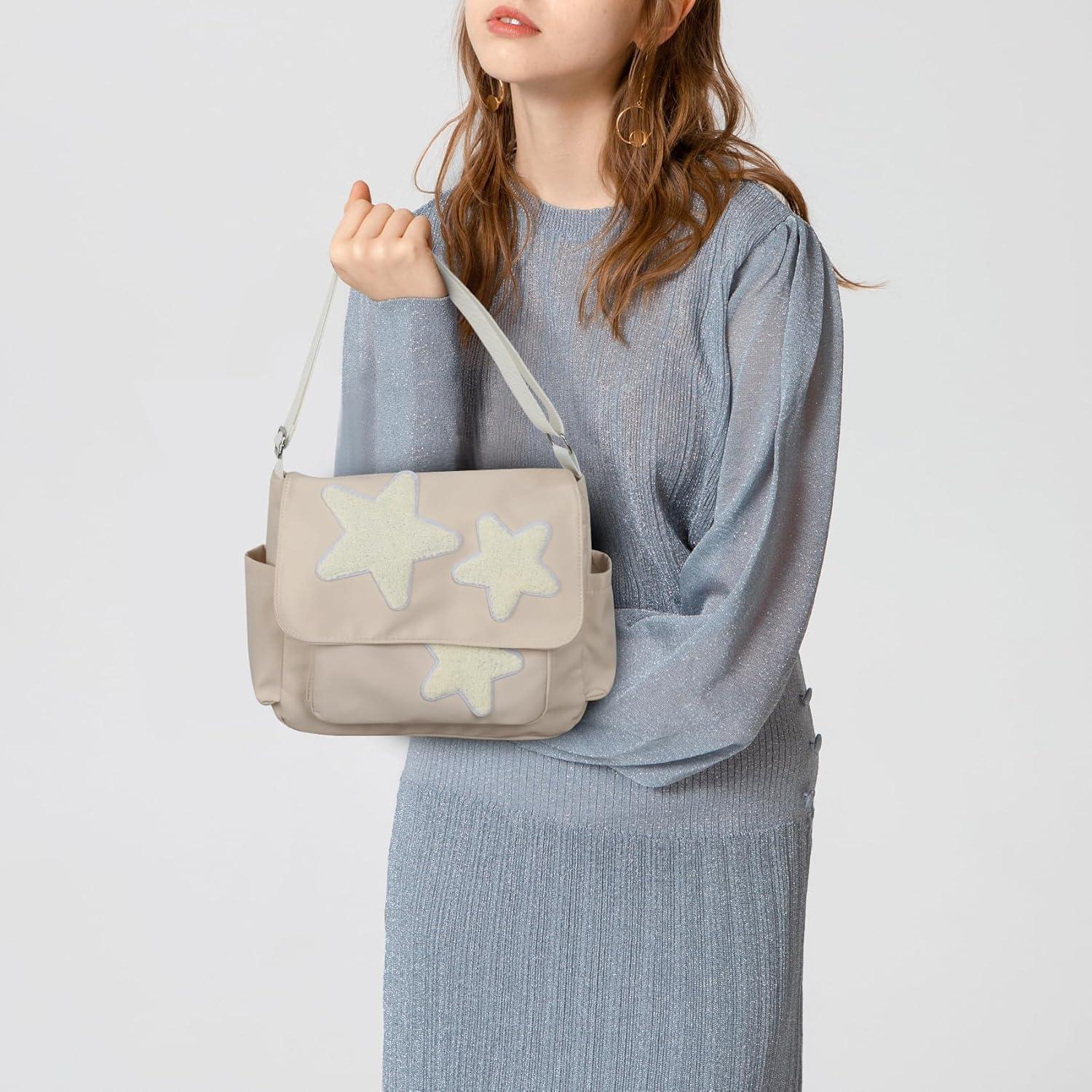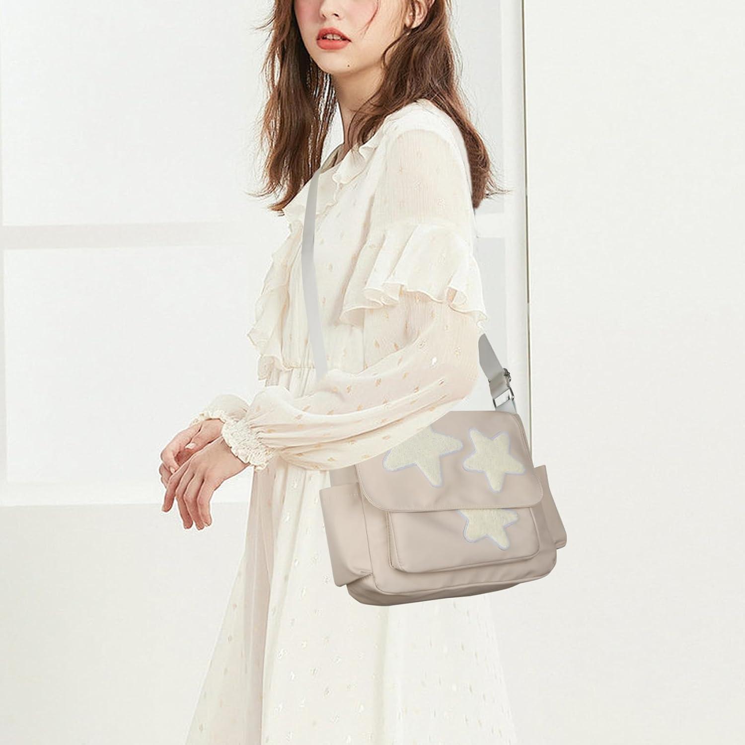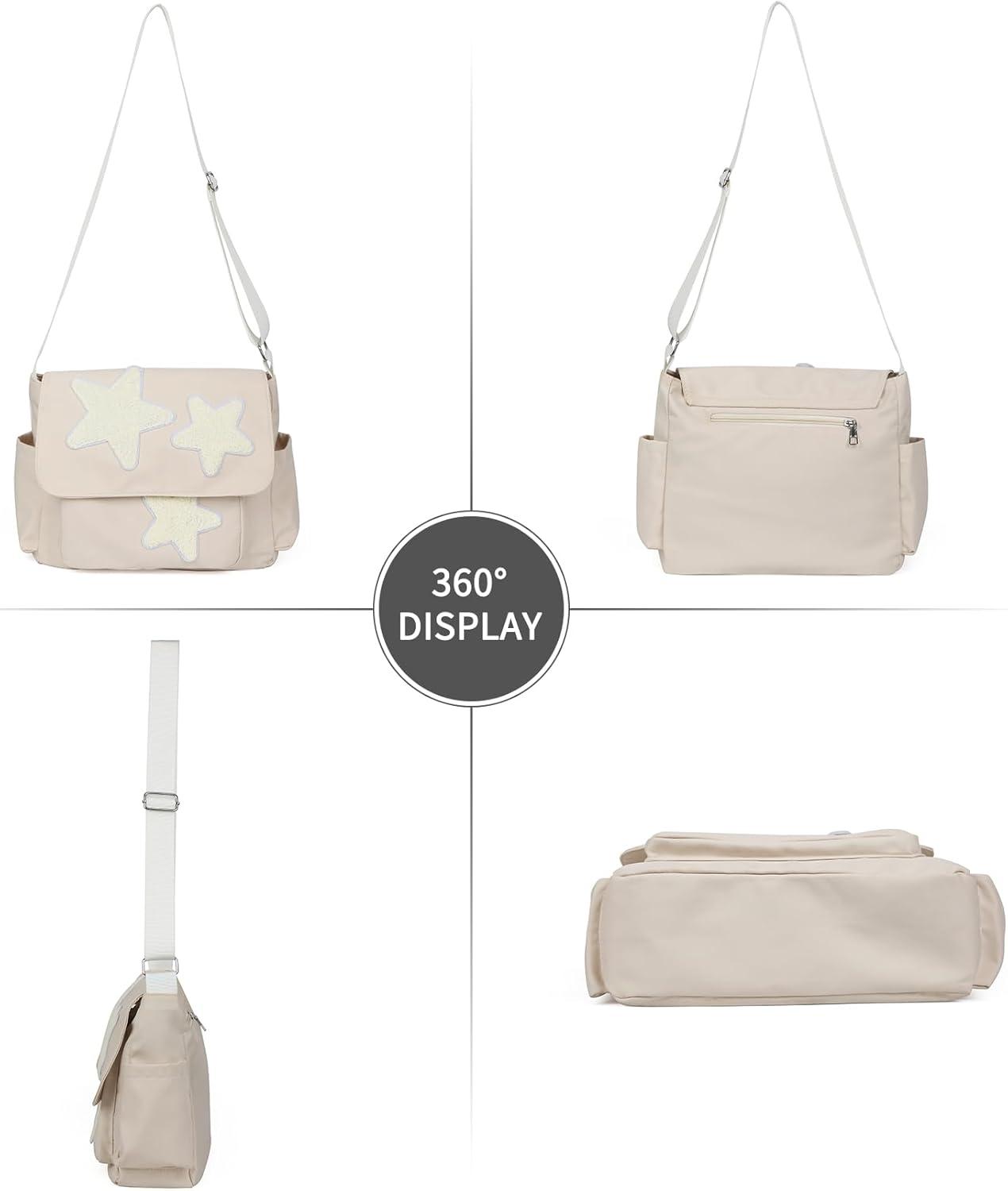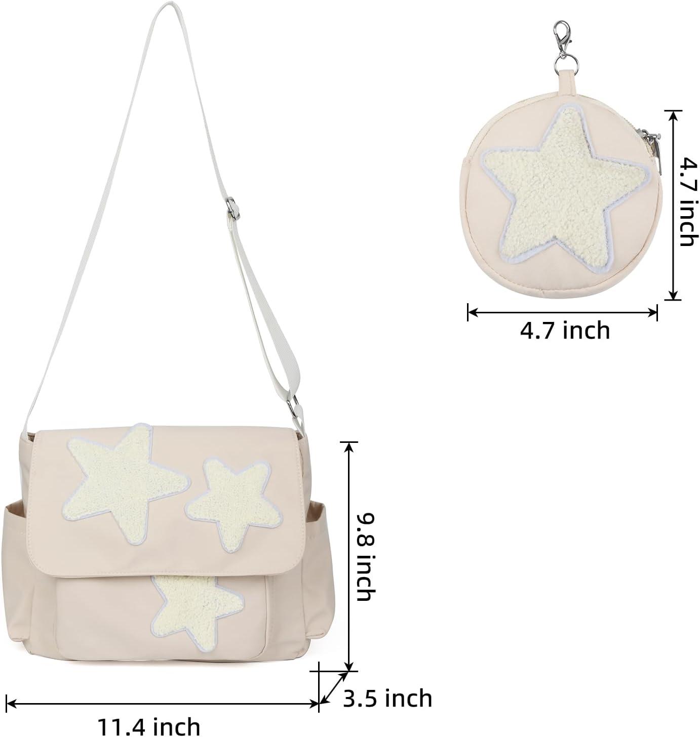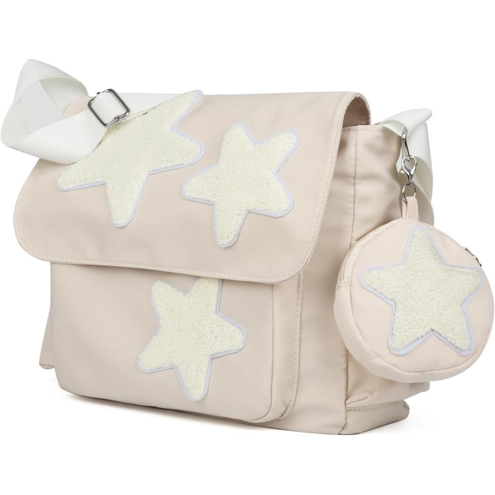 Valleycomfy Messenger Bag,Canvas Messenger Bag with Star Purse,Crossbody Bag for Women(Beige)