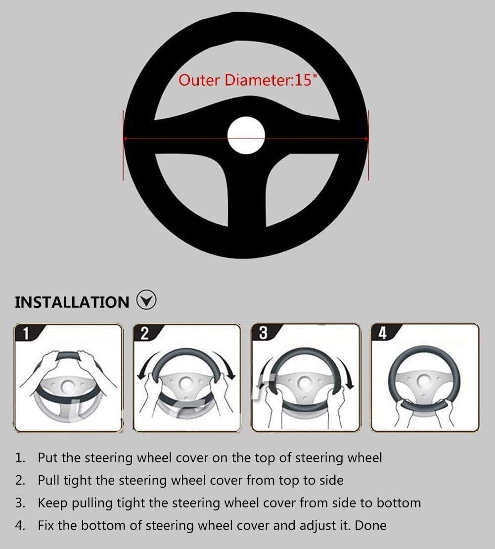 Easy-to-install: This steering wheel cover requires hassle-free installation. Just place the cover on top of the steering wheel. Press and hold the upper part of the cover and gradually lower it with both hands on either side to tighten