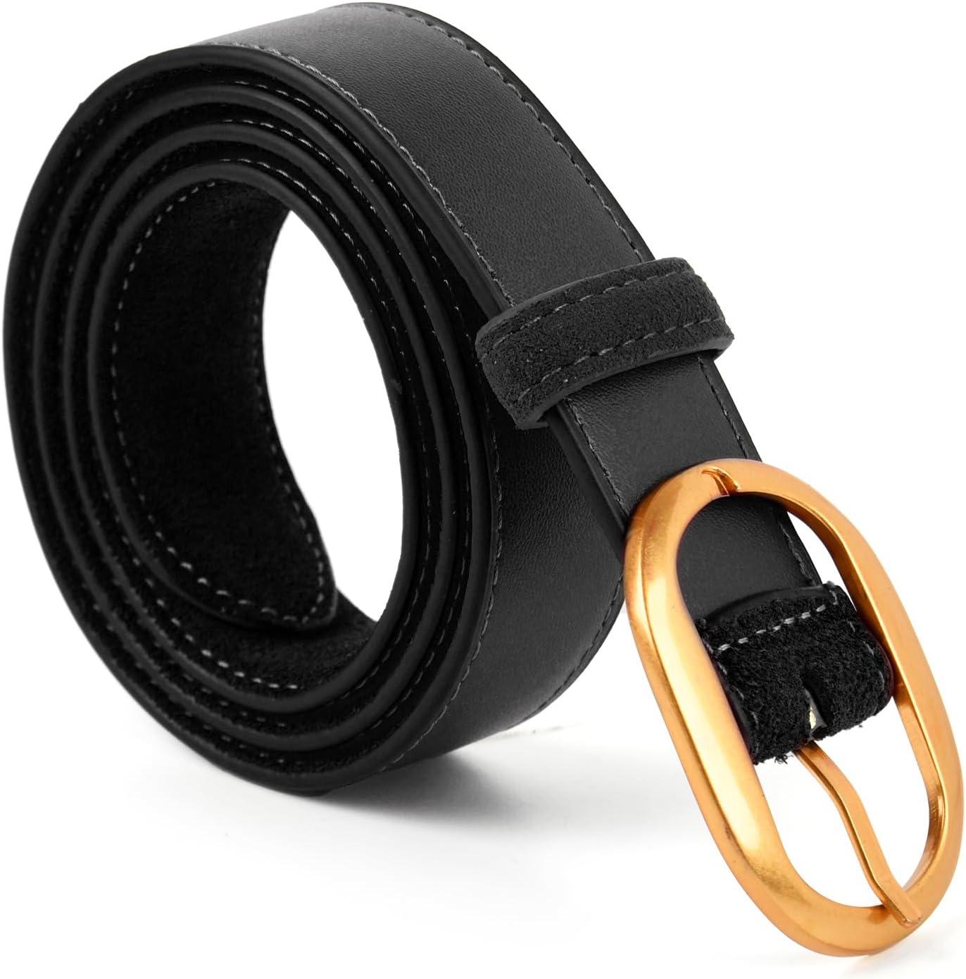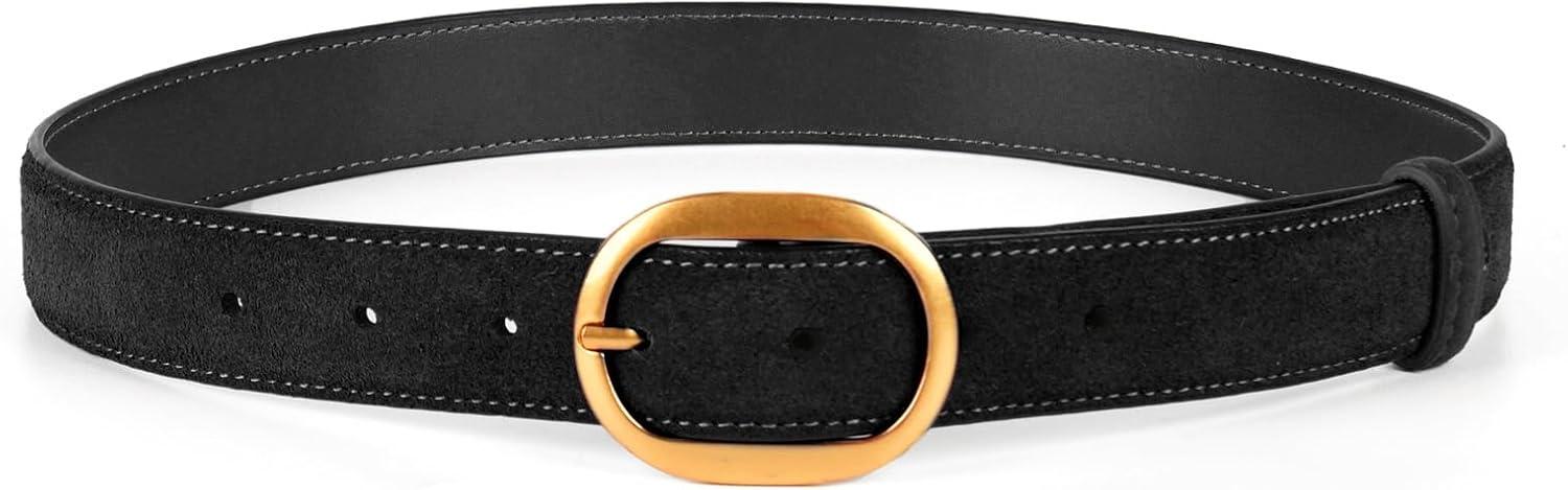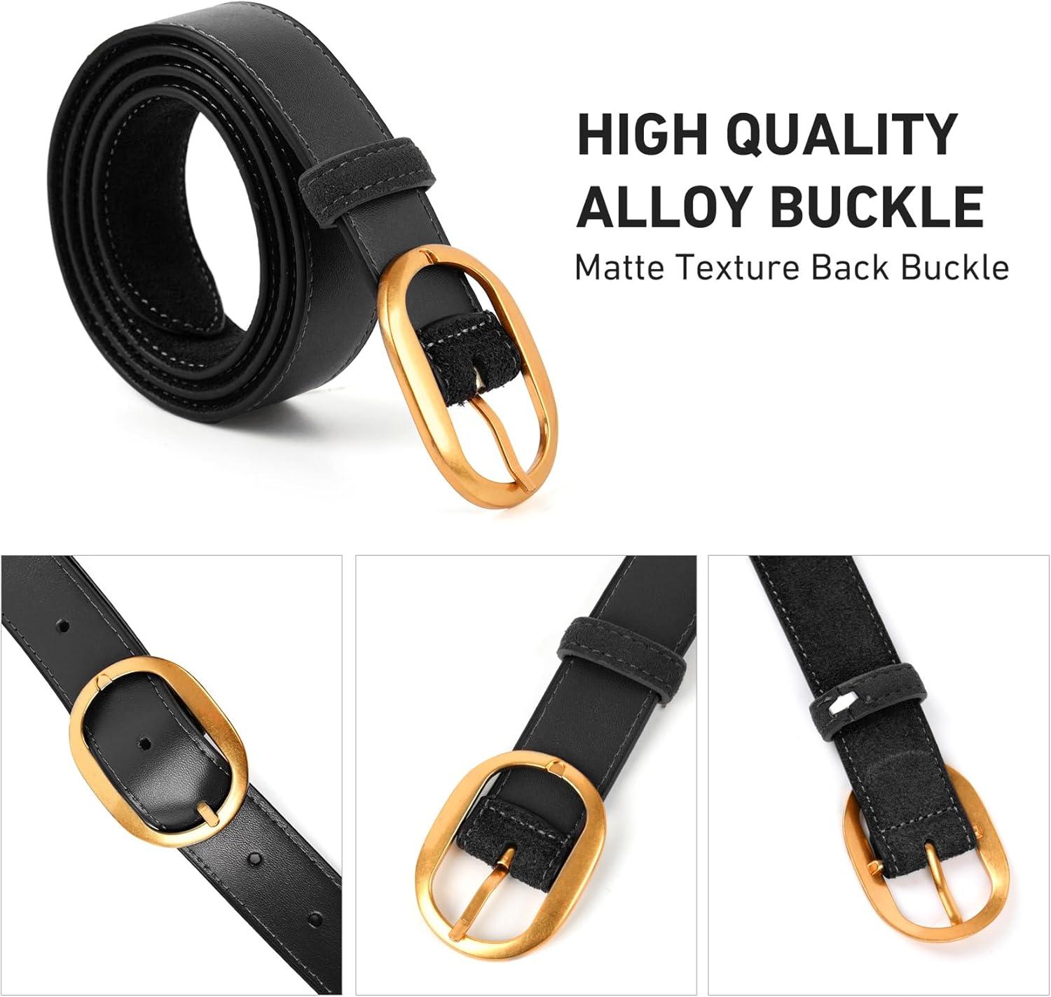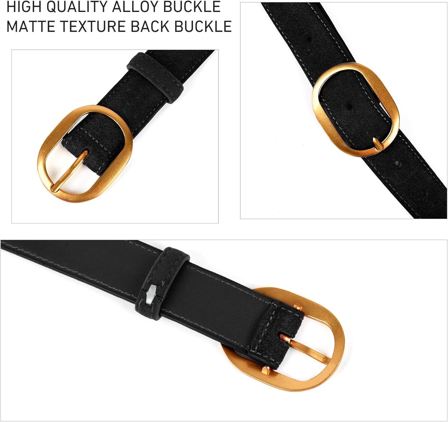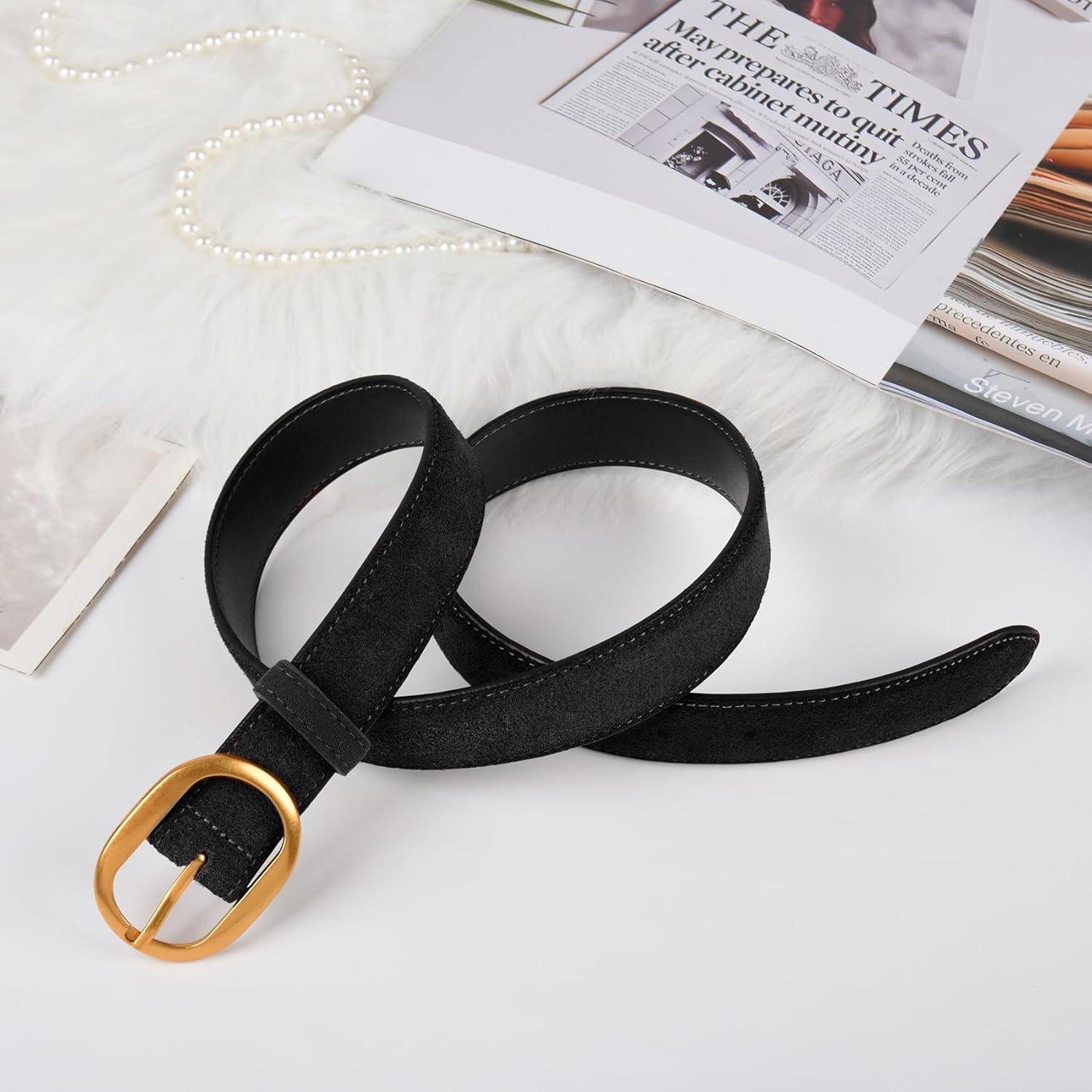Valleycomfy Womens Leather Suede Waist Belt for Casual Dress Jeans Ladies with Gold Buckle(Black)